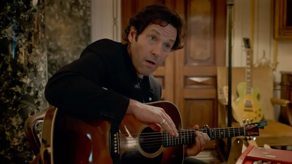 The first act is easily the film’s strongest stretch. Rudd and Jonas have a natural, easy chemistry, and the offbeat humor from Rick’s bandmates adds a welcome looseness. The extended sequence of Rick and Danny writing together, fueled by drinks and creative momentum, is heightened for the screen but rooted in something real. You can tell this script was written by someone who has actually been in those rooms. The small details land: debating keys, chasing a melody, deciding when a falsetto elevates a lyric. Those moments feel lived-in, and they are the film at its best.
